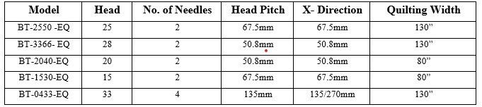 Continuous quilting of independent pattern, skipping quilting function unlimited and continuous quilting and embroidery in Y direction, front and rear automatic tensioning systems.