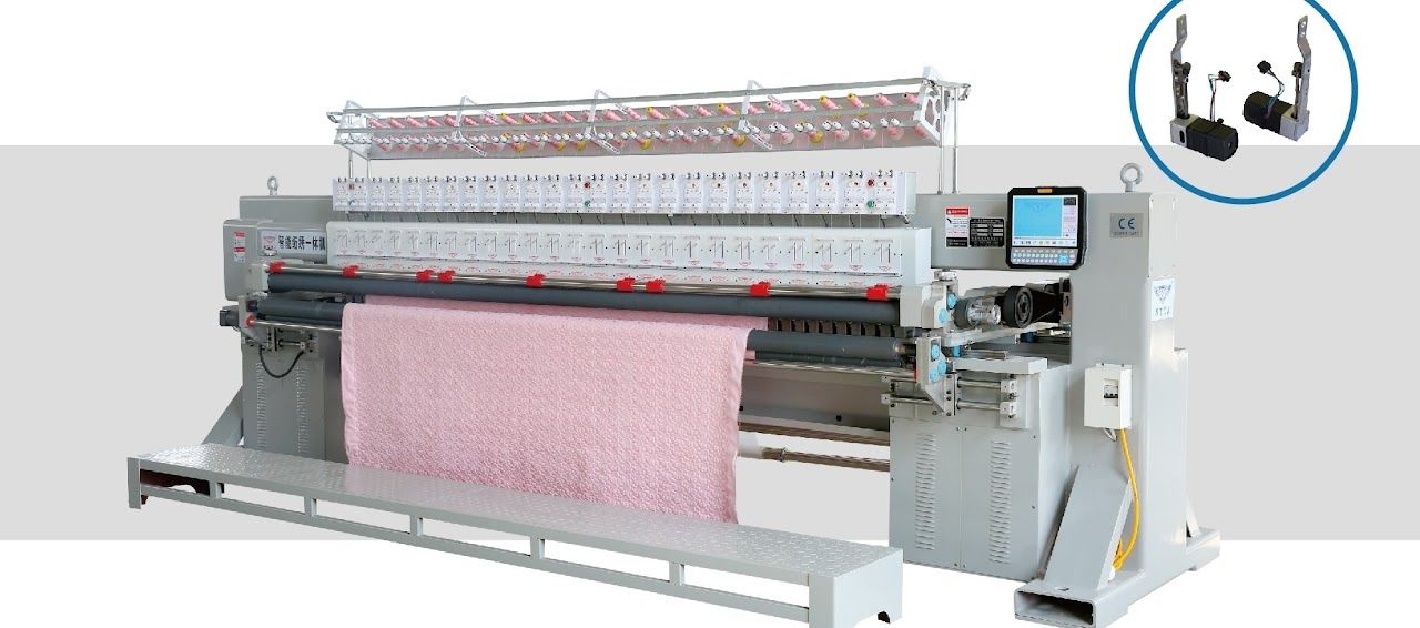 This multi needle shuttle quilting machine is specialized for making textile and garment products jackets, gloves, and many more products. Fully computerized and equipped with all servo motors for making productivity and quality with wide range of quilting designs.